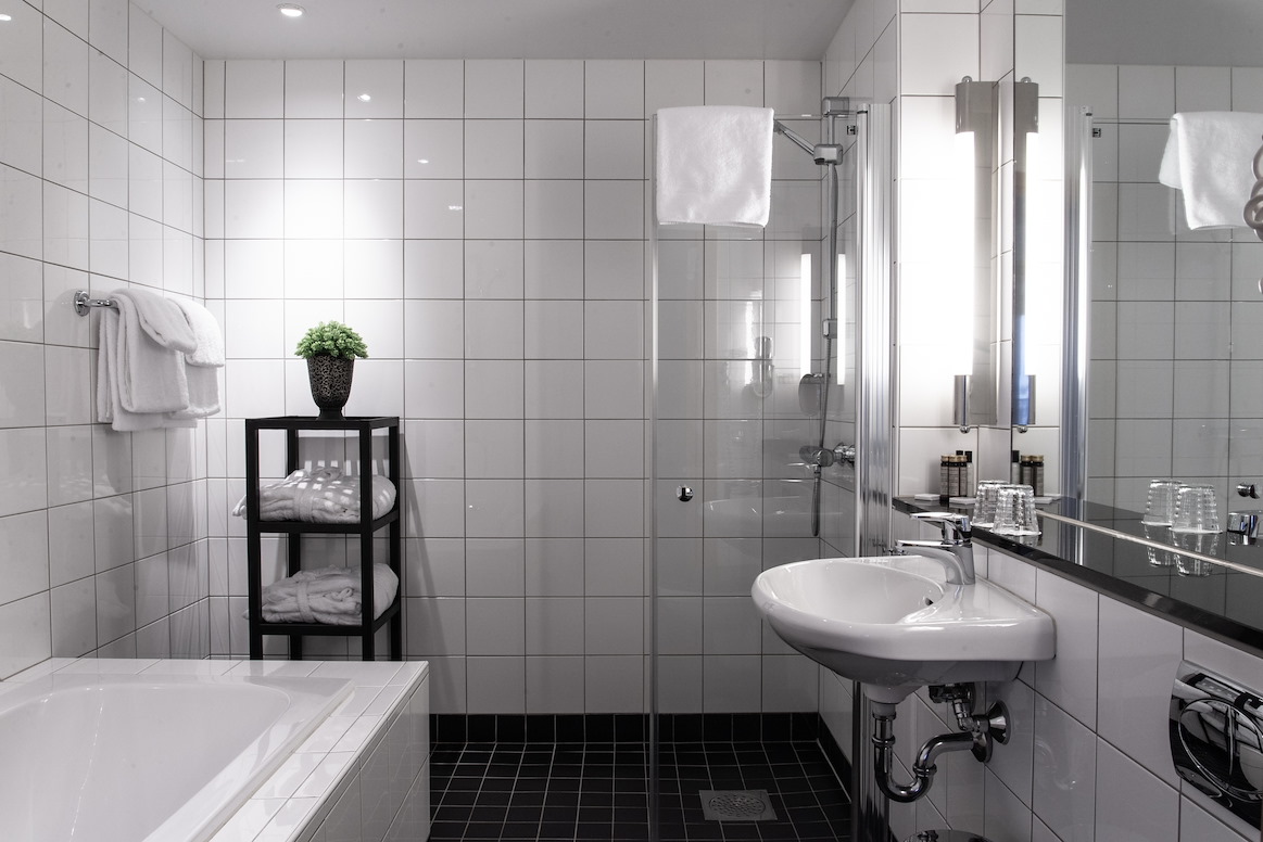 - Bathroom with shower, floor heating, hair dryer, shampoo, soap etc.